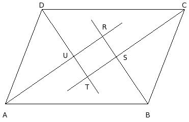 In the given figure, ABCD is a parallelogram. The bisector of the angles A, B, C & D intersect at R, S, T & U to form a quadrilateral. Find ∠URS