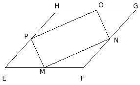 EFGH is a rhombus. M, N, O and P are mid-points of sides EF, FG, GH and HE. Find ∠NOP