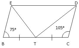 In the given figure, BCDE is a parallelogram such that T is the mid-point of BC and BC = 2EB. Find ∠ETD