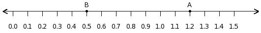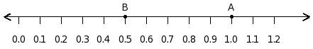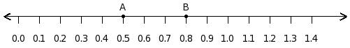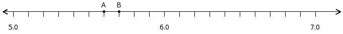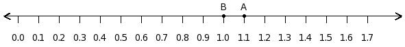 Find the difference between the decimal values at point A and B