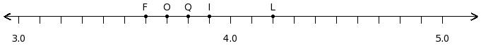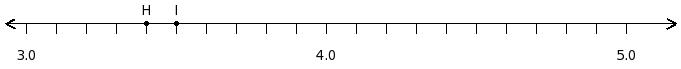 Find the sum of the decimal numbers at the points labelled with letters H and I