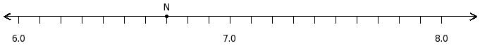 Find the decimal number at the point labelled with letter N