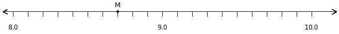 Find the decimal number at the point labelled with letter M