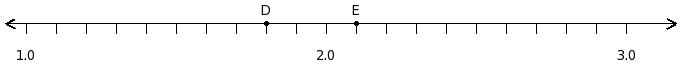 Find the difference of the decimal numbers at the points labelled with letters D and E