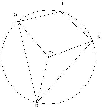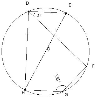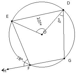 In the given figure, O is the centre of the circle. If ∠DOE = 107° and ∠EFH = 78°, find ∠GDO