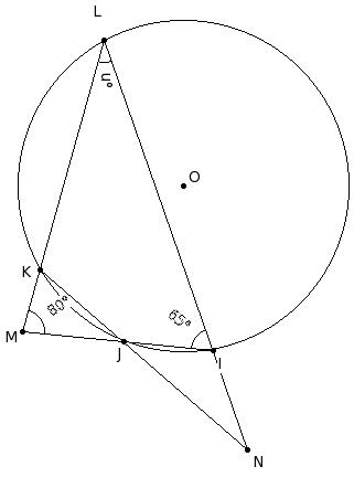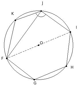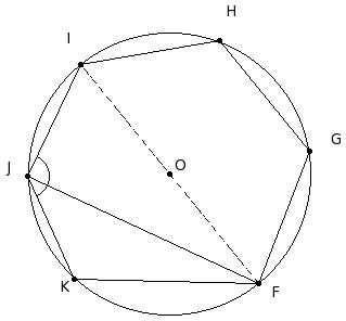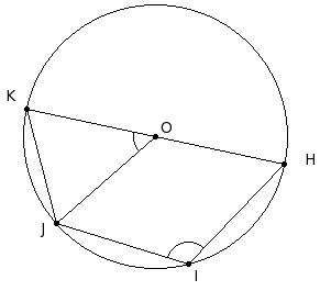 O is the centre of the circle. If ∠HIJ = 116.5°, find ∠JOK