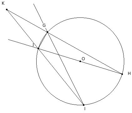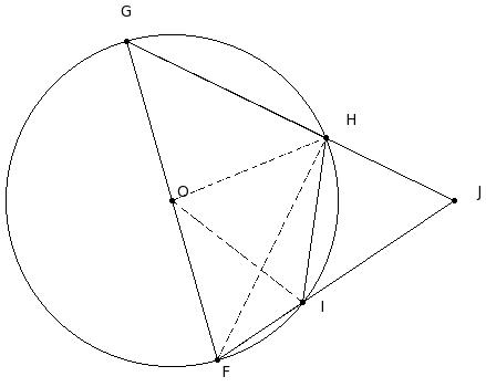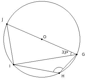 O is the centre of the circle and ∠JGI = 33°, find ∠GHI