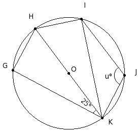 In the given figure, O is the centre of the circle and chord GH is equal to chord HI and HK is a diameter. If ∠GKH = 25°, find ∠KJI