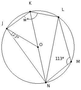 In the given figure, O is the centre of the circle and chord JK is equal to chord KL and KN is a diameter. If ∠NJO = 23° and ∠LMN = 113°, find ∠JKL