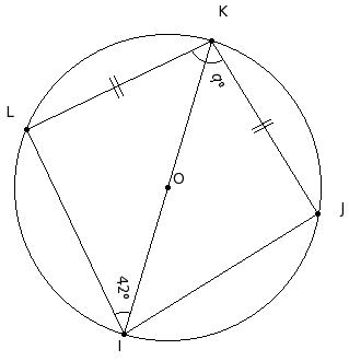 In the given figure, O is the centre of the circle , chord JK is equal to chord KL and IK is a diameter. If ∠LIK = 42° find ∠JKL