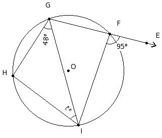 In the given figure, O is the centre of the circle. If ∠IGH = 48° and ∠EFI = 95°, find ∠GIH