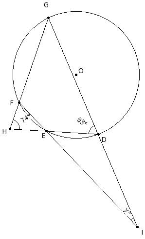 In the given figure, ∠OIH = 16° & ∠OHE = 48°, find ∠GFE