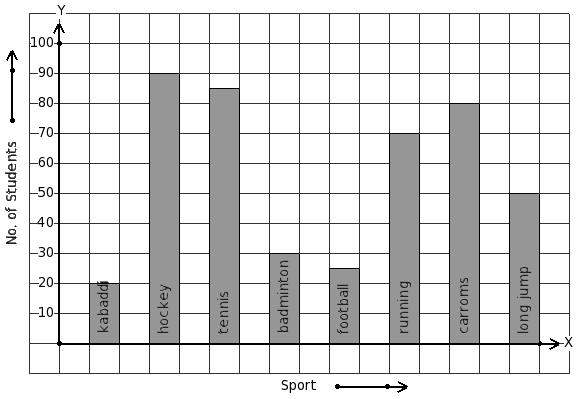 The following bar graph gives data regarding the favourite sport of 531 students of a school. Identify the table for the given bar diagram.
