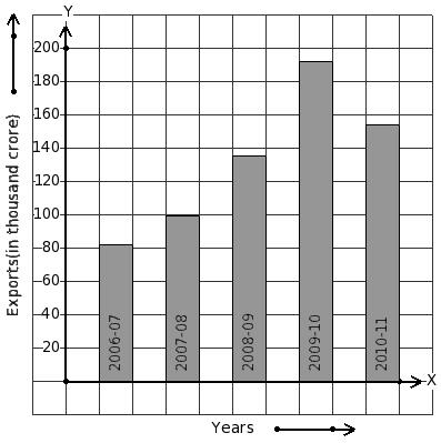 The following bar graph shows the export earnings of a country (in thousand crore) during five years. Find the year that has maximum export earnings.