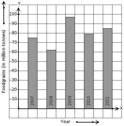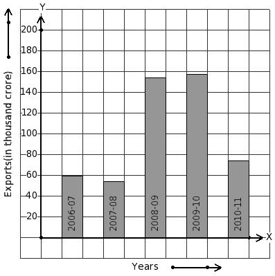The following bar graph shows the export earnings of a country (in thousand crore) during five years. Find the year that has 74 thousand crore export earnings.