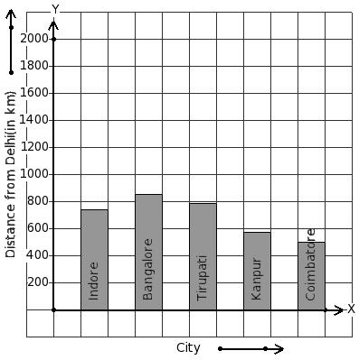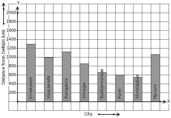 The air distance of some cities from Delhi (in km) are given below. Find the city that has maximum distance.