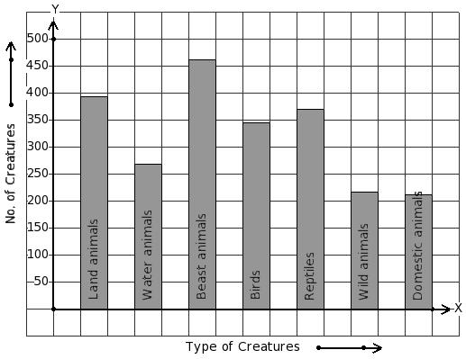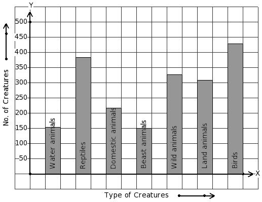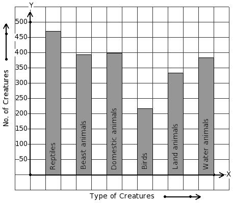 There are 1521 creatures in a zoo as shown in the bar graph. Identify the table for the given bar diagram.
