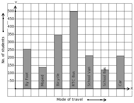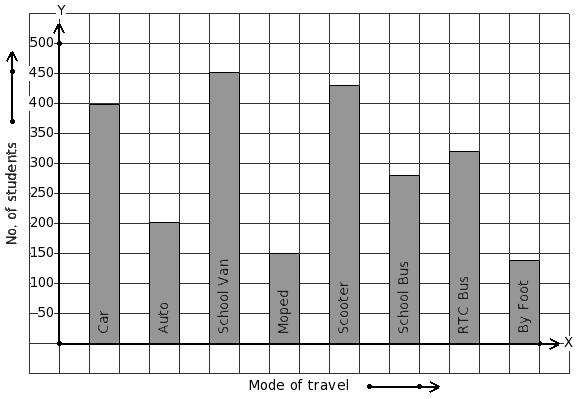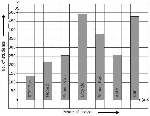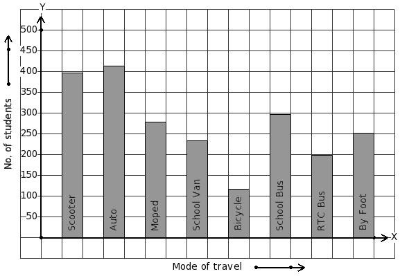 Students of a certain locality use different modes of travel to school as given below. Find the mode of travel that has minimum students.