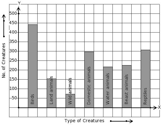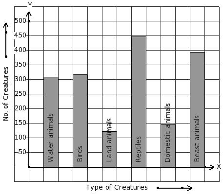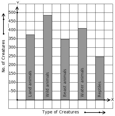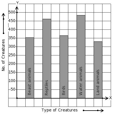 There are 1710 creatures in a zoo as shown in the bar graph. Identify the table for the given bar diagram.