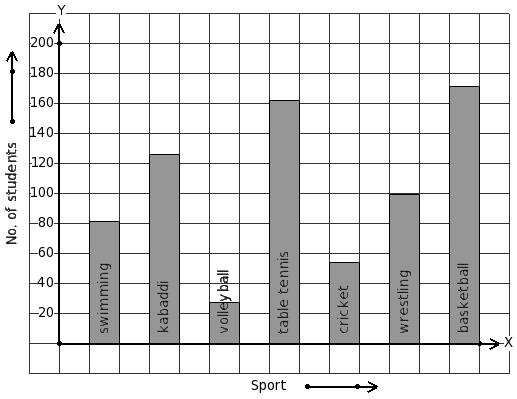 The following bar graph gives data regarding the favourite sport of 720 students of a school. Identify the table for the given bar diagram.