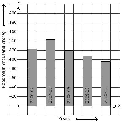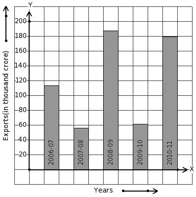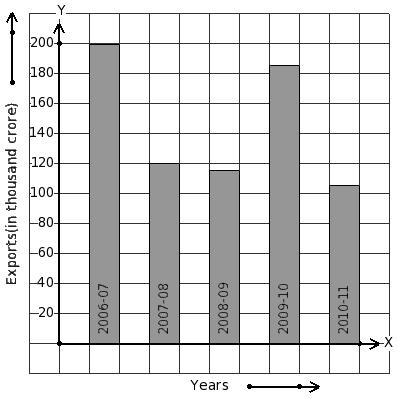 The following bar graph shows the export earnings of a country (in thousand crore) during five years. Find the year that has 115 thousand crore export earnings.