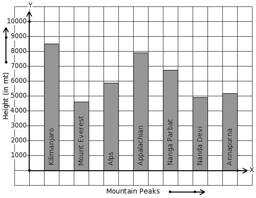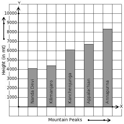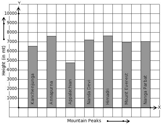 Given below is the column-graph showing heights of some mountain peaks. Find the mountain that has minimum height.
