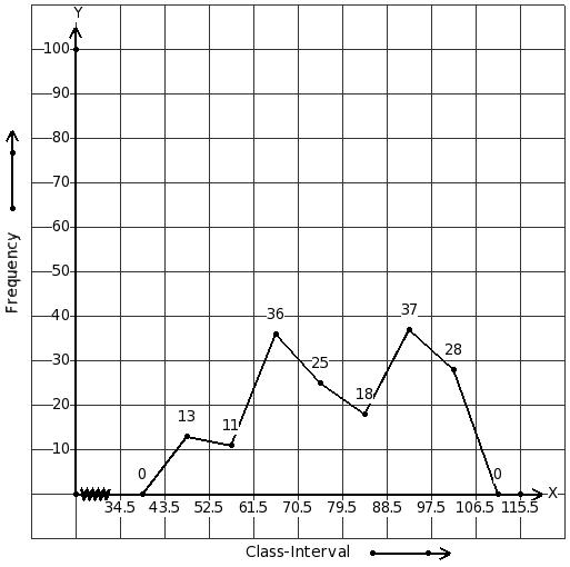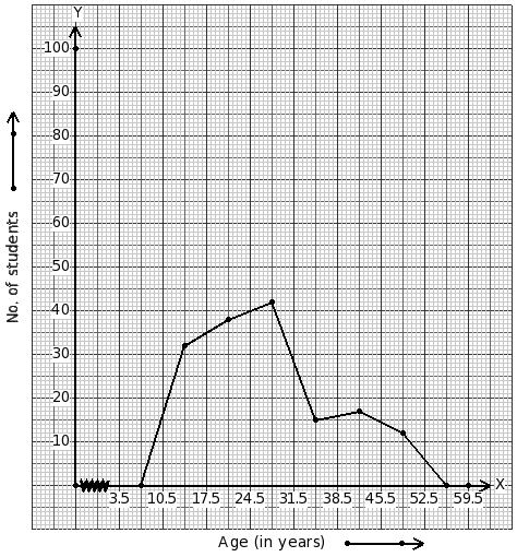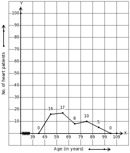 Given frequency polygon showing the number of heart patients at various age groups, identify the class interval table.