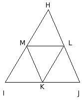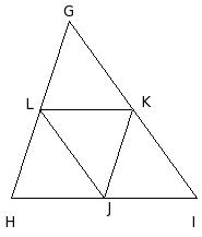 In the given figure, the area of the △GHI is x sq.cm. J,K,L are the mid-points of the sides HI , IG and GH respectively. The area of the △JKL is