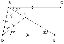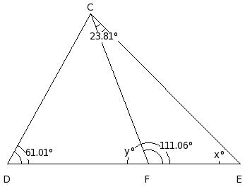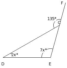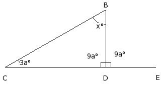 In the given figure, △BCD in which side CD has been produced to E. If ∠DBC = x° , ∠BCD = (3a)° , ∠CDB = (9a)° and ∠BDE = (9a)°, find the values of a and x.