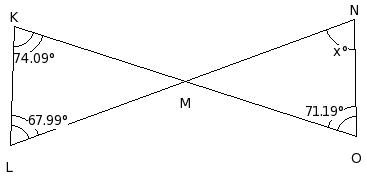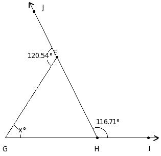 In a right angled triangle, if one of the angles is 56.31°, find the third angle