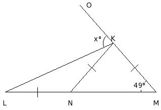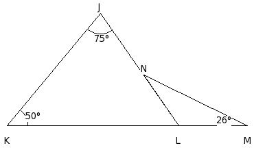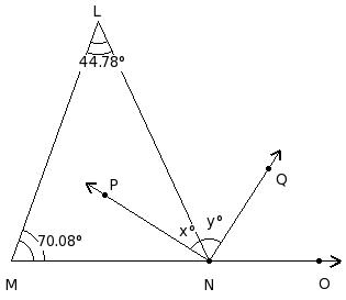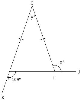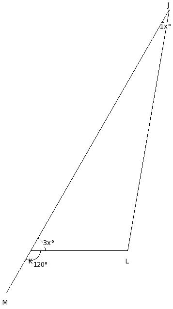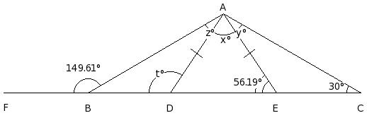 In the following figure, one side of a triangle has been produced. Find all the angles of the triangle