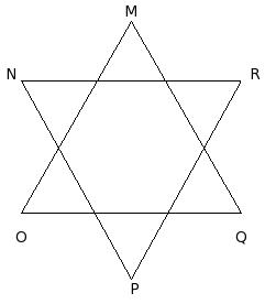 In the given two equilateral triangles, find ∠M + ∠O + ∠Q + ∠N + ∠P + ∠R .