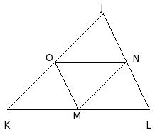 In the given figure, points M , N and O are the mid-points of sides KL, LJ and JK of △JKL. Which of the following are true?