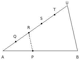 In the given figure, if A, Q, R, S, T, U are equidistant and RP ∥ UB and AB = 26 cm and AP = 10 cm. Find PB