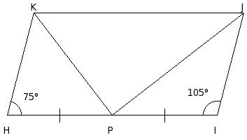 In the given figure, HIJK is a parallelogram such that P is the mid-point of HI and HI = 2KH. Find ∠KPJ