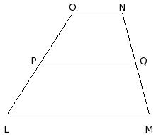 In the given figure, LMNO is a trapezium. P and Q are mid-points of LO and MN.Given NO = 7 cm and LM = 20 cm, find PQ