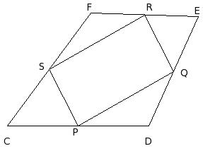 CDEF is a quadrilateral. P, Q, R and S are mid-points of CD, DE, EF and FC respectively.If CE = 31 cm and DF = 18 cm, find the measure of the sides of PQRS.