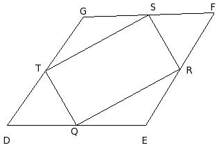 DEFG is a quadrilateral. Q, R, S and T are mid-points of DE, EF, FG and GD respectively.If DF = 34 cm and EG = 18 cm, find the measure of the sides of QRST.