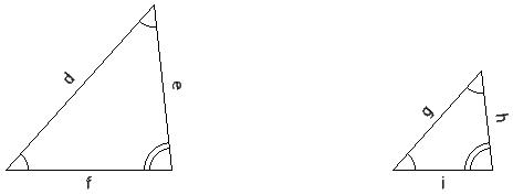 In the given two similar triangles, if d = 20 cm, e = 15 cm, f = 15 cm, h = 9 cm, find i