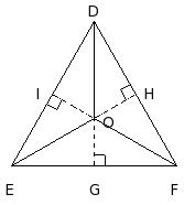 In the given figure, in △DEF, 'O' is a point inside the triangle. OG ⟂ EF, OH ⟂ DF and OI ⟂ DE. Then