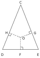 In the given figure, in △CDE, 'O' is a point inside the triangle. OF ⟂ DE, OG ⟂ CE and OH ⟂ CD. Then