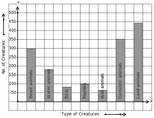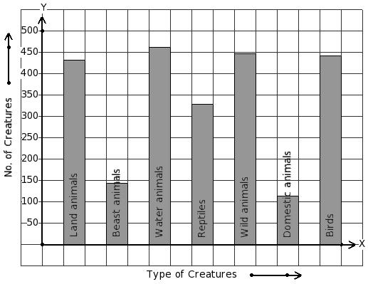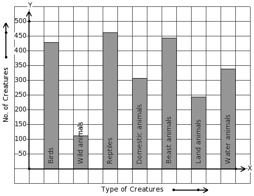 There are 1512 creatures in a zoo as shown in the bar graph. Identify the table for the given bar diagram.