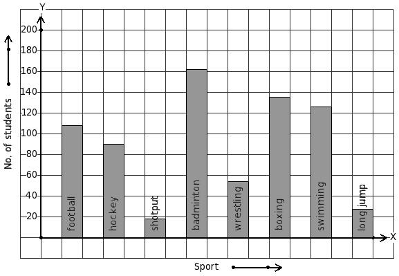 The following bar graph gives data regarding the favourite sport of 720 students of a school. Identify the table for the given bar diagram.