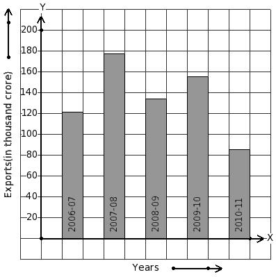 The following bar graph shows the export earnings of a country (in thousand crore) during five years. Find the year that has maximum export earnings.