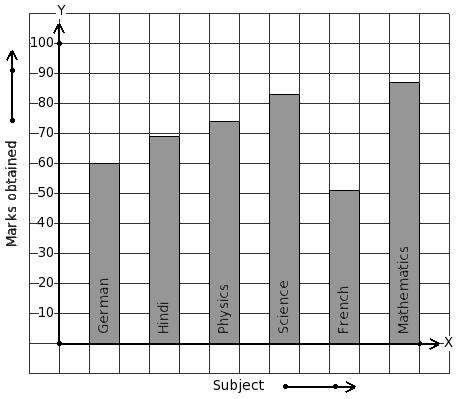 The marks obtained by Kaushik in his annual exam are shown below. Find the subject that has minimum score.