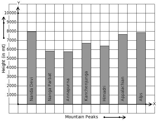 Given below is the column-graph showing heights of some mountain peaks. Find the mountain that has 7973 m height.
