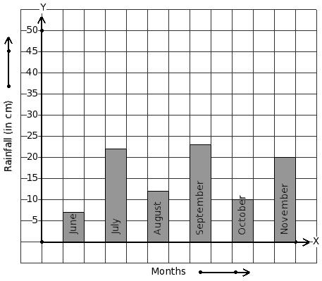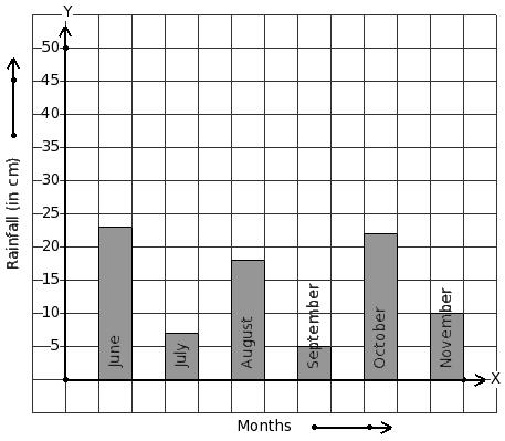 Read the given column-graph. Find the month that has 18 cm rainfall.