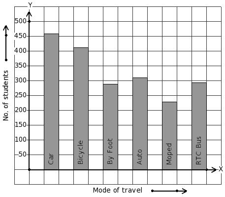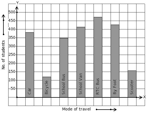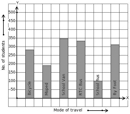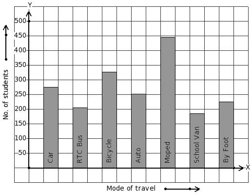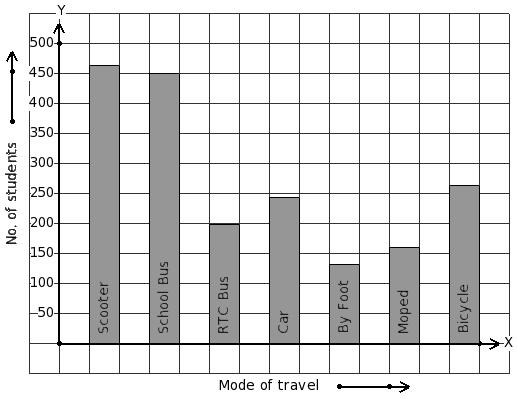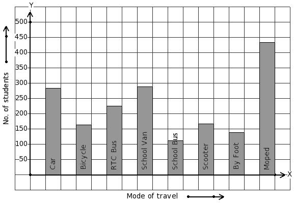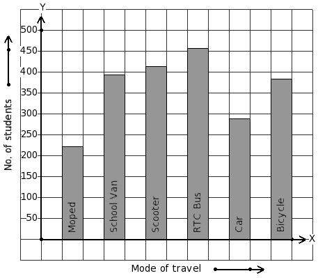 Students of a certain locality use different modes of travel to school as given below. Find the mode of travel that has minimum students.