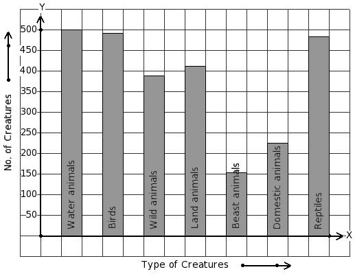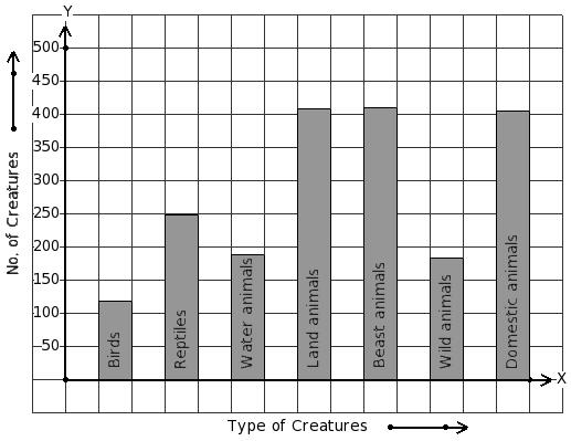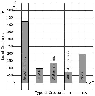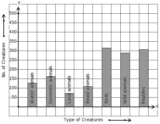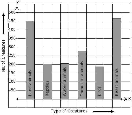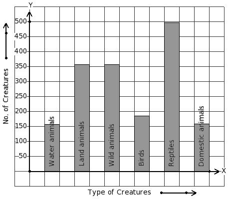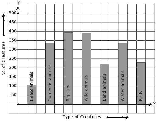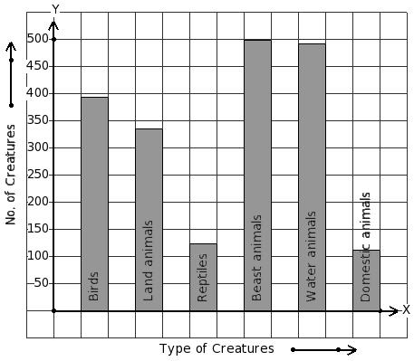 There are 927 creatures in a zoo as shown in the bar graph. Identify the table for the given bar diagram.