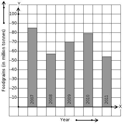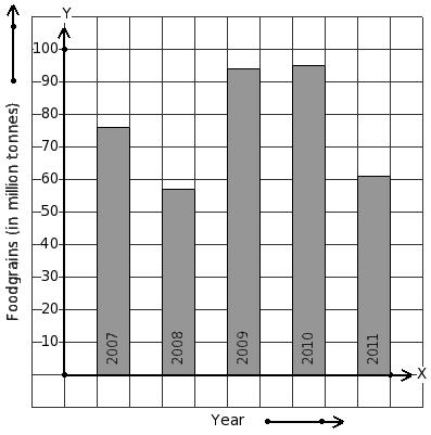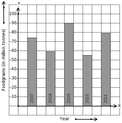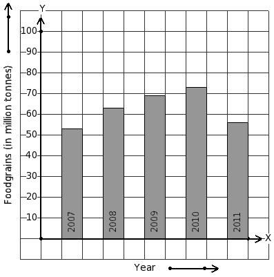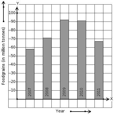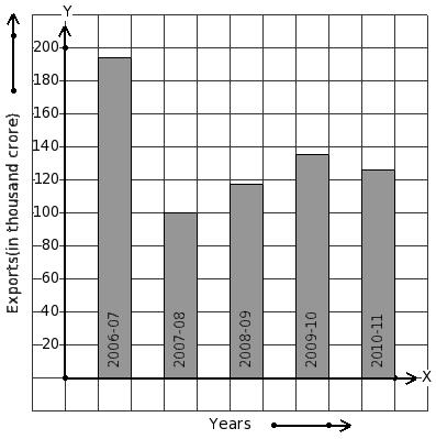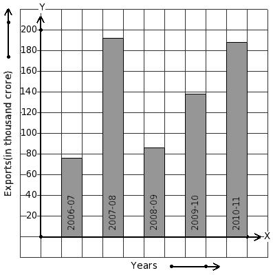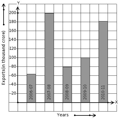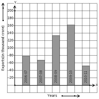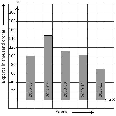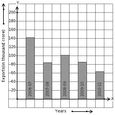 The following bar graph shows the export earnings of a country (in thousand crore) during five years. Find the year that has 70 thousand crore export earnings.
